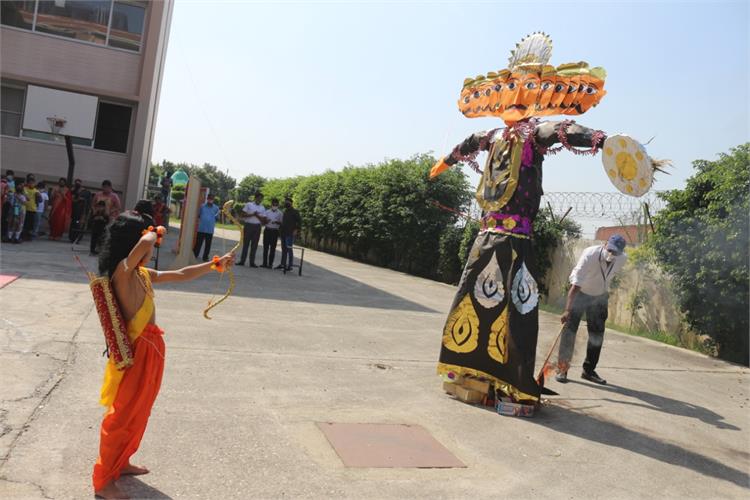 In the end all the students promised to burn their bad habits along with the effigy of Ravana. The guest for the day Mrs Swapna Nair motivated the students with her words. The Director and the Principal advised the students to eschew their wrong habits. The Principal rendered a vote of thanks. The day concluded with an